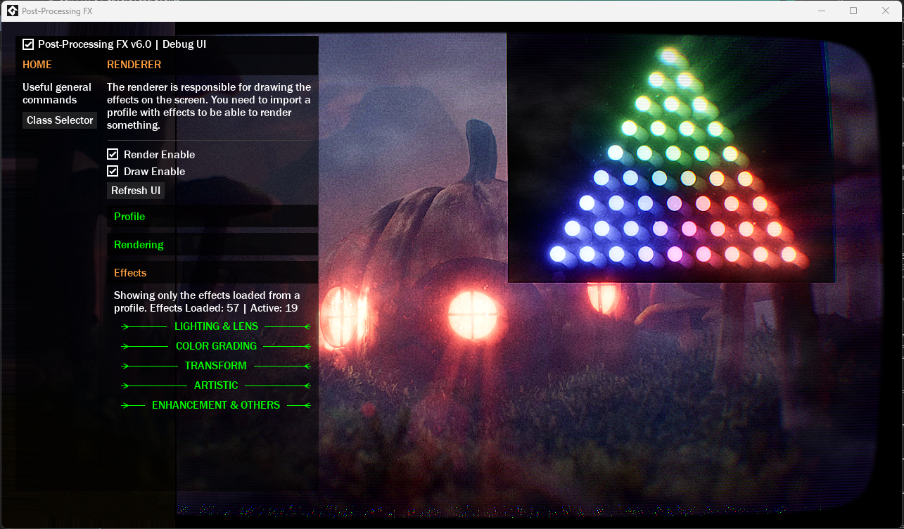 Includes the newest and most amazing Debug UI! It's cleaner, more functional, and the internal code is much better. Menus are still under development, but you can already test everything from PPFX_Renderer in it. To create the UI, simply call this: